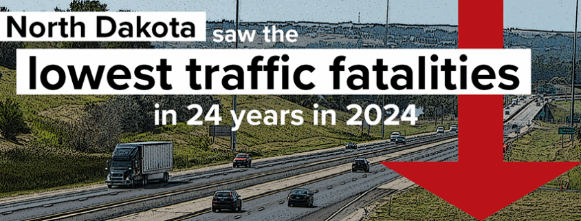 Announcements, NDSC News, UncategorizedIn 2024, North Dakota recorded 89 traffic fatalities (including drivers, passengers, motorcyclists, and pedestrians) a drop of 17 people compared to 2023, and the lowest annual total in more than two decades.